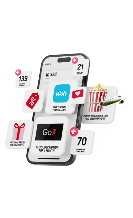 * X Business users, as well as from 01.01.2024 X smart and X smart KIWIE (including C smart and C smart KIWIE) card users who are 22 years of age or older will not receive points for purchases. There will be a chance to participate in C REWARDS individual challenges and receive prizes for paying with a card.